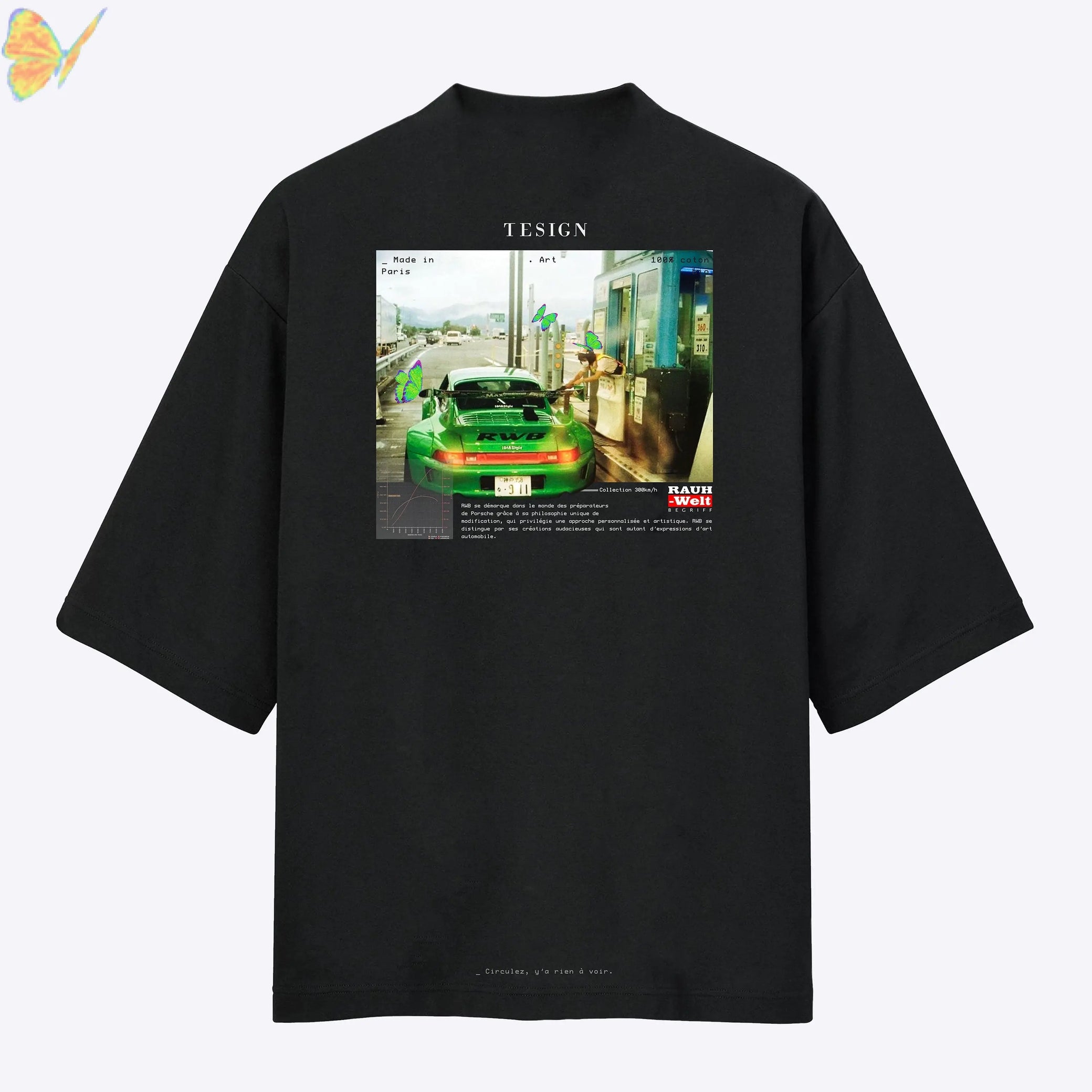Notre T-shirt affiche une sortie de péage d'une Porsche RWB au Japon.
