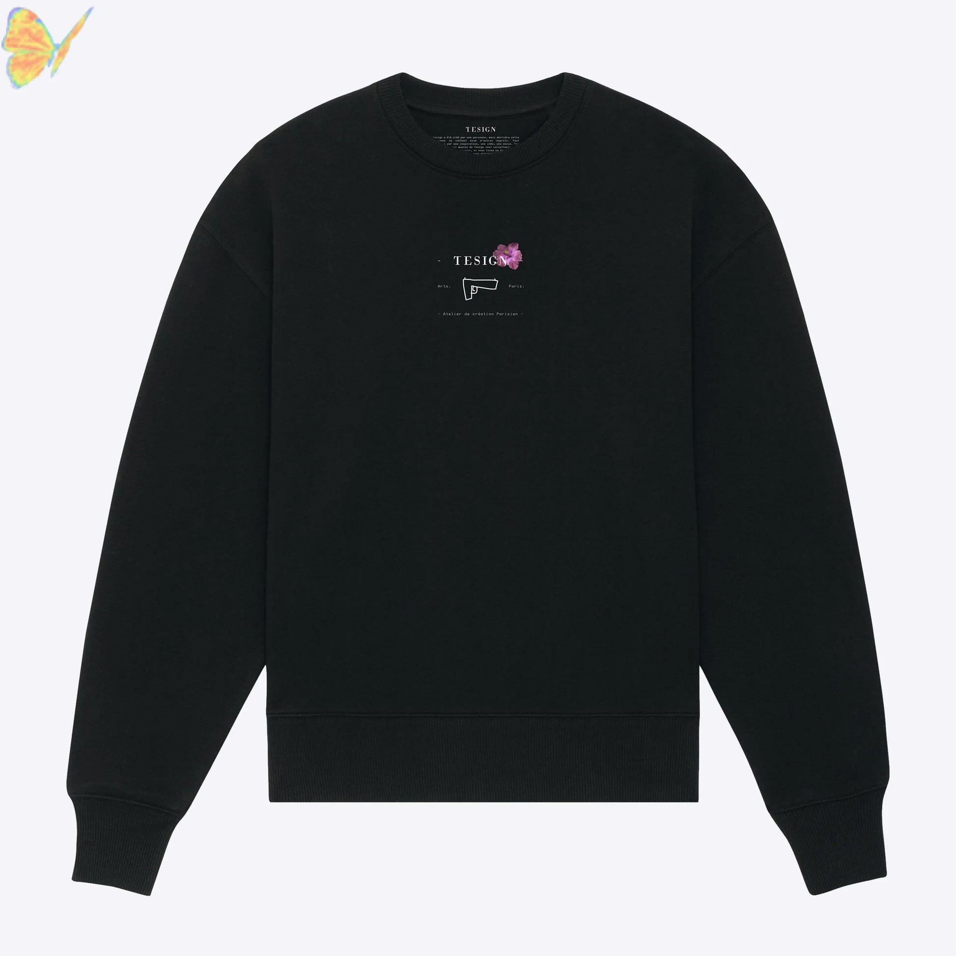 Notre crewneck affiche un pistolet à eau accompagné de notre logo à l’avant.
