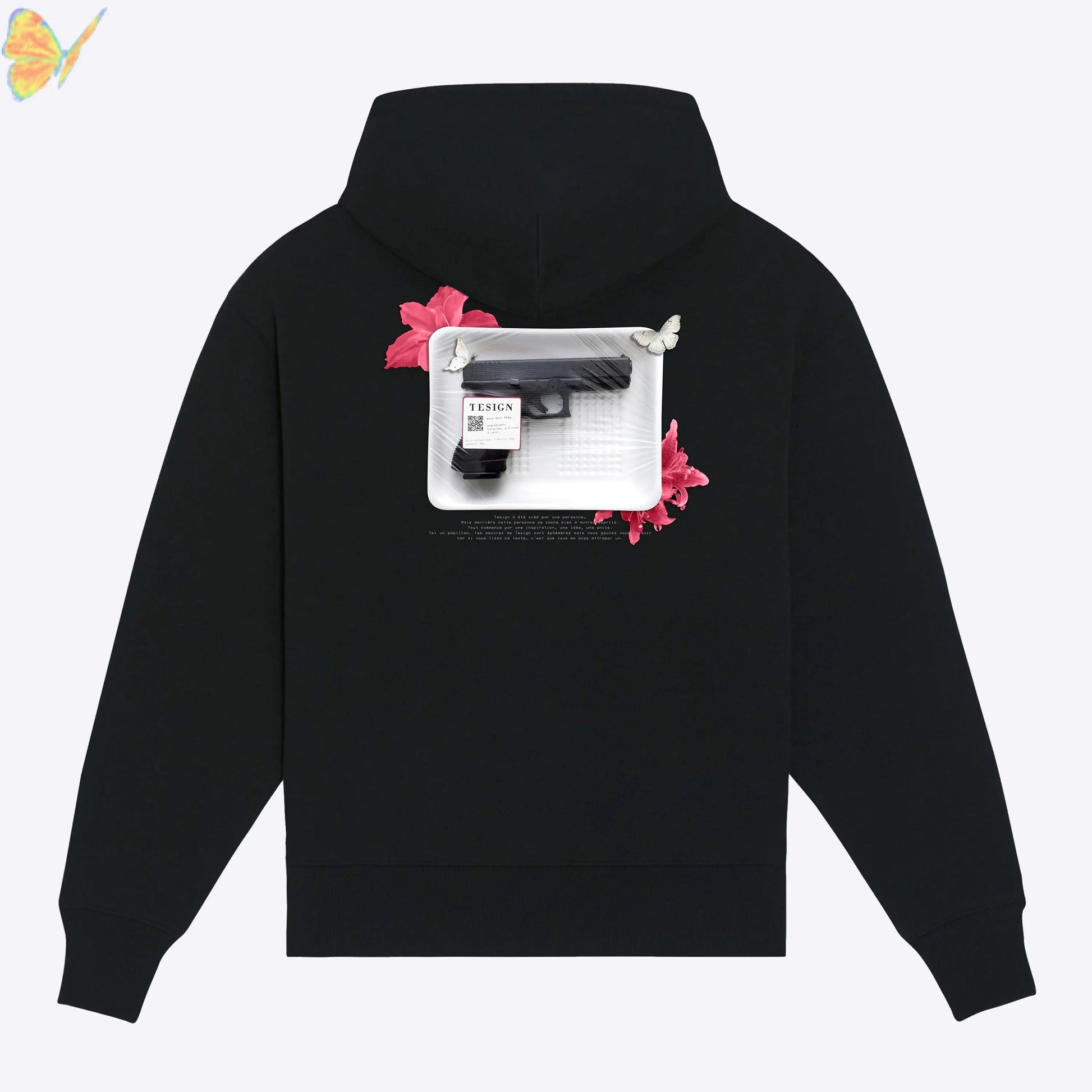Notre hoodie affiche un emballage sous vide au dos et notre logo à l’avant.